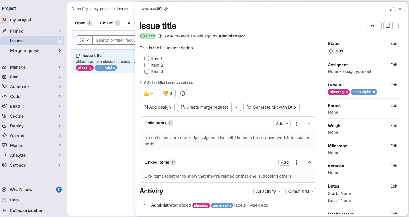 - On the Issues or Epics page, right-click the item and open it in a new tab.