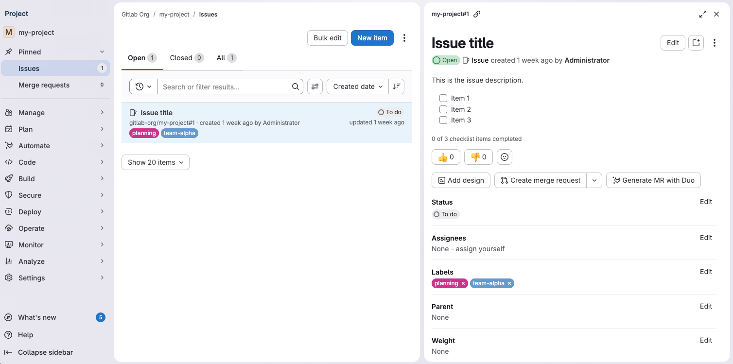 By default, work items like issues or epics open in the details panel. If you prefer to turn it off: