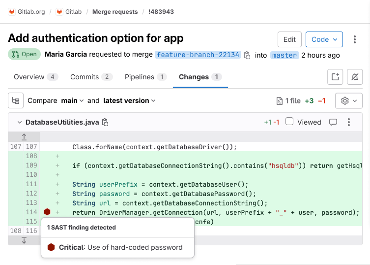 | New findings in merge request changes view | no | yes |